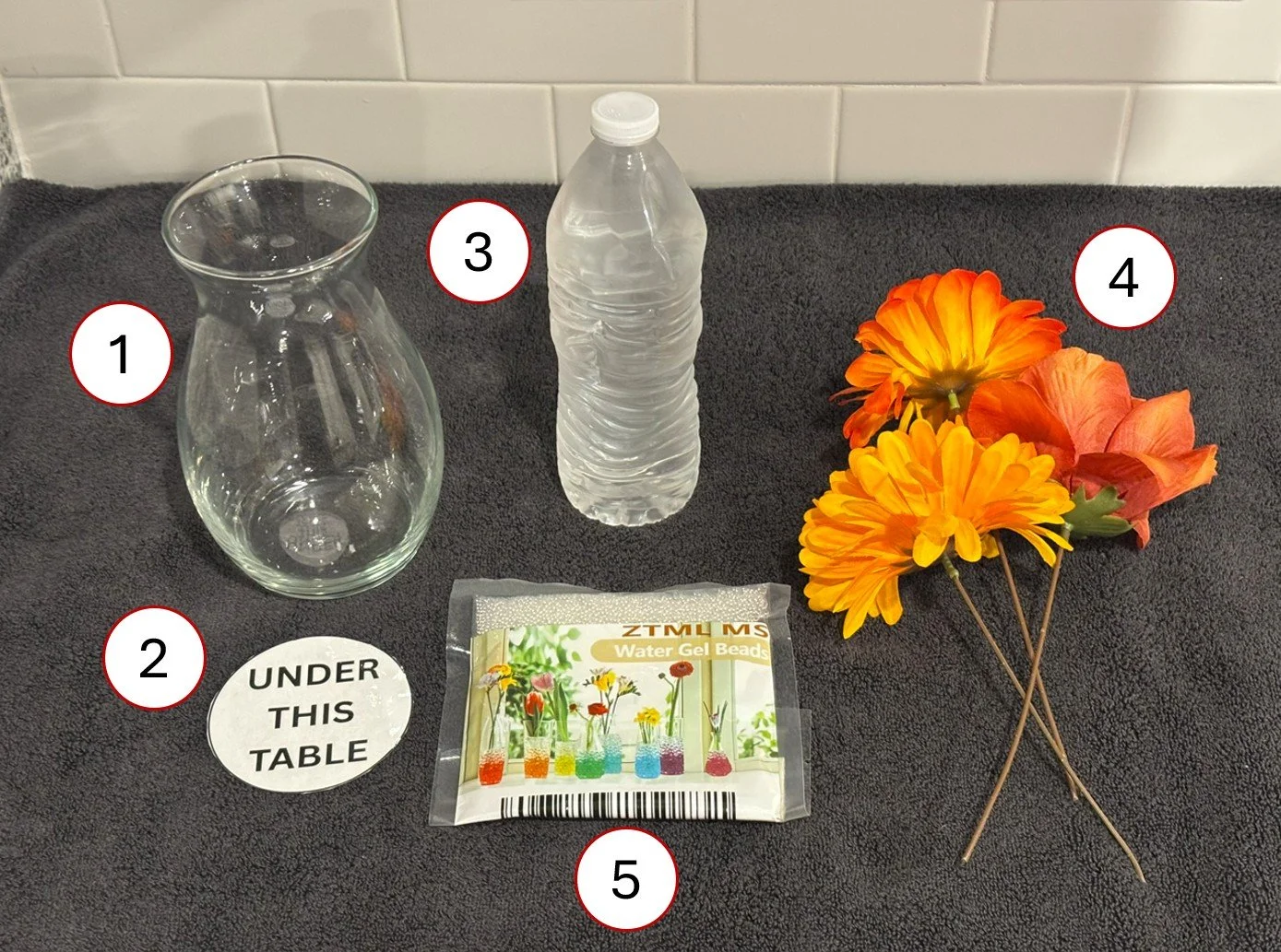 For your adventure, create a backup vase of water beads with the same clue just in case something happens to the first vase. It’s much quicker to set out a second vase instead of trying to pick up thousands of tiny wet beads because the first vase tipped over.